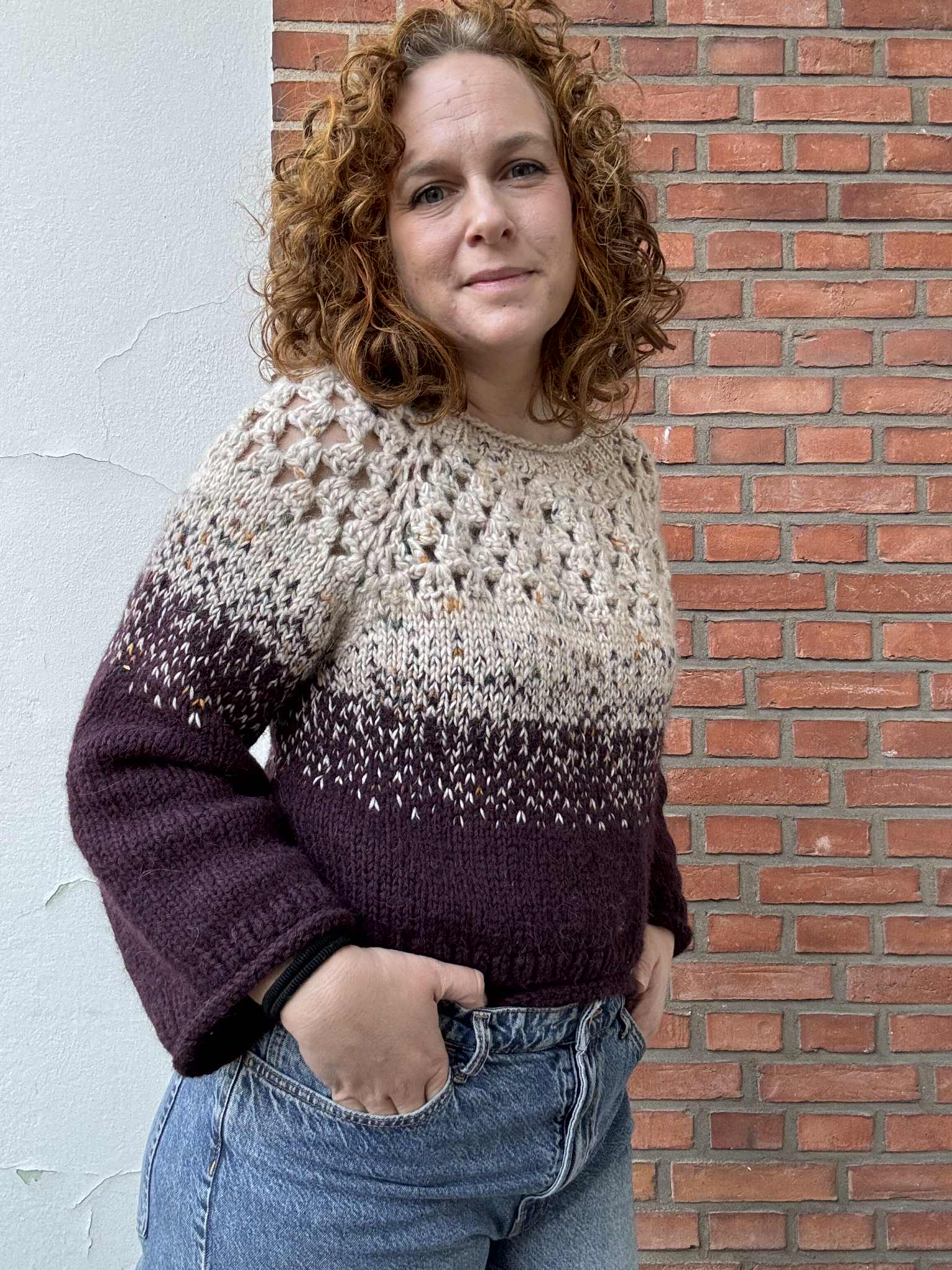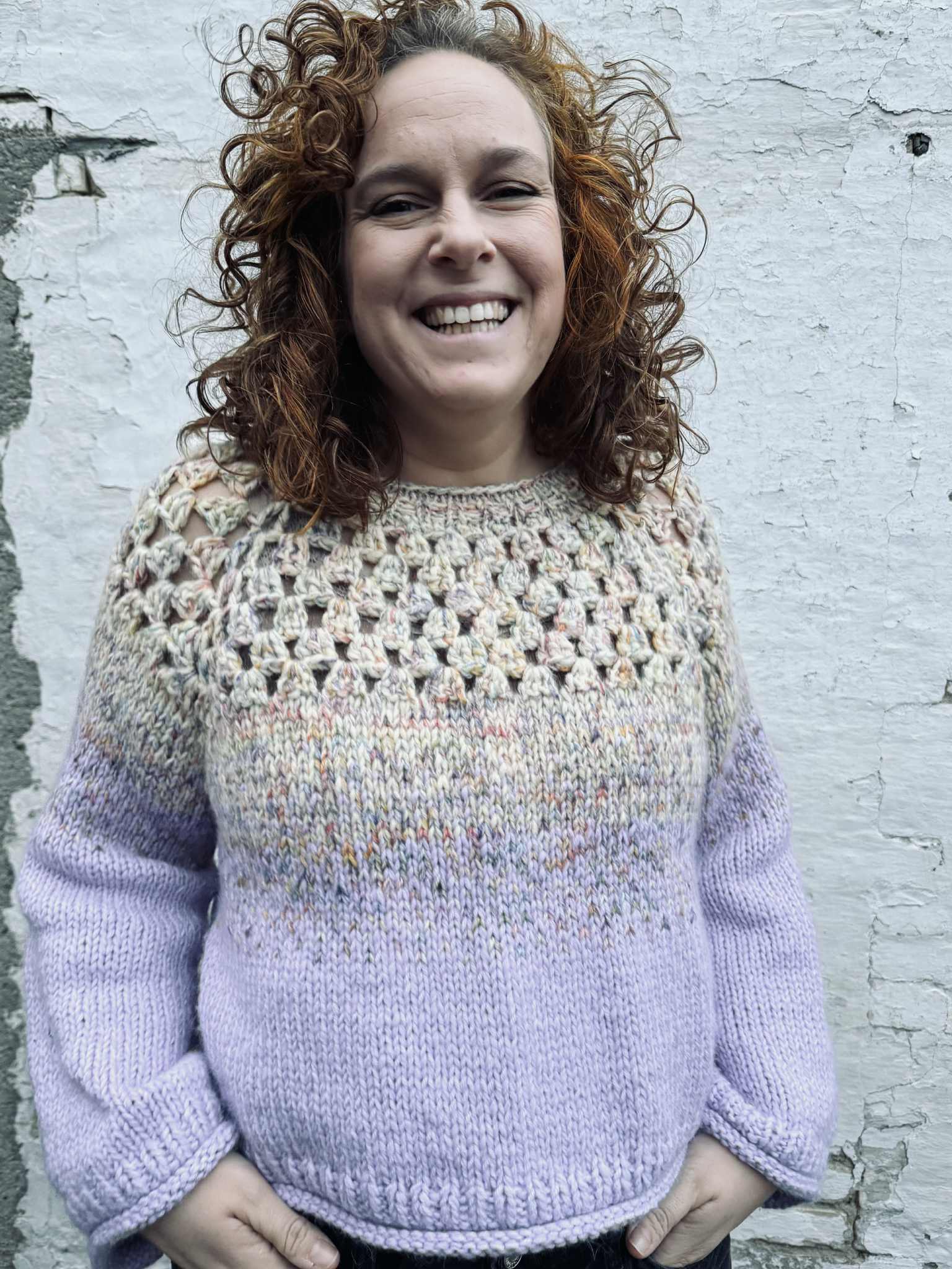 The Mista Sweater is worked top-down and combines both knitting and crochet.