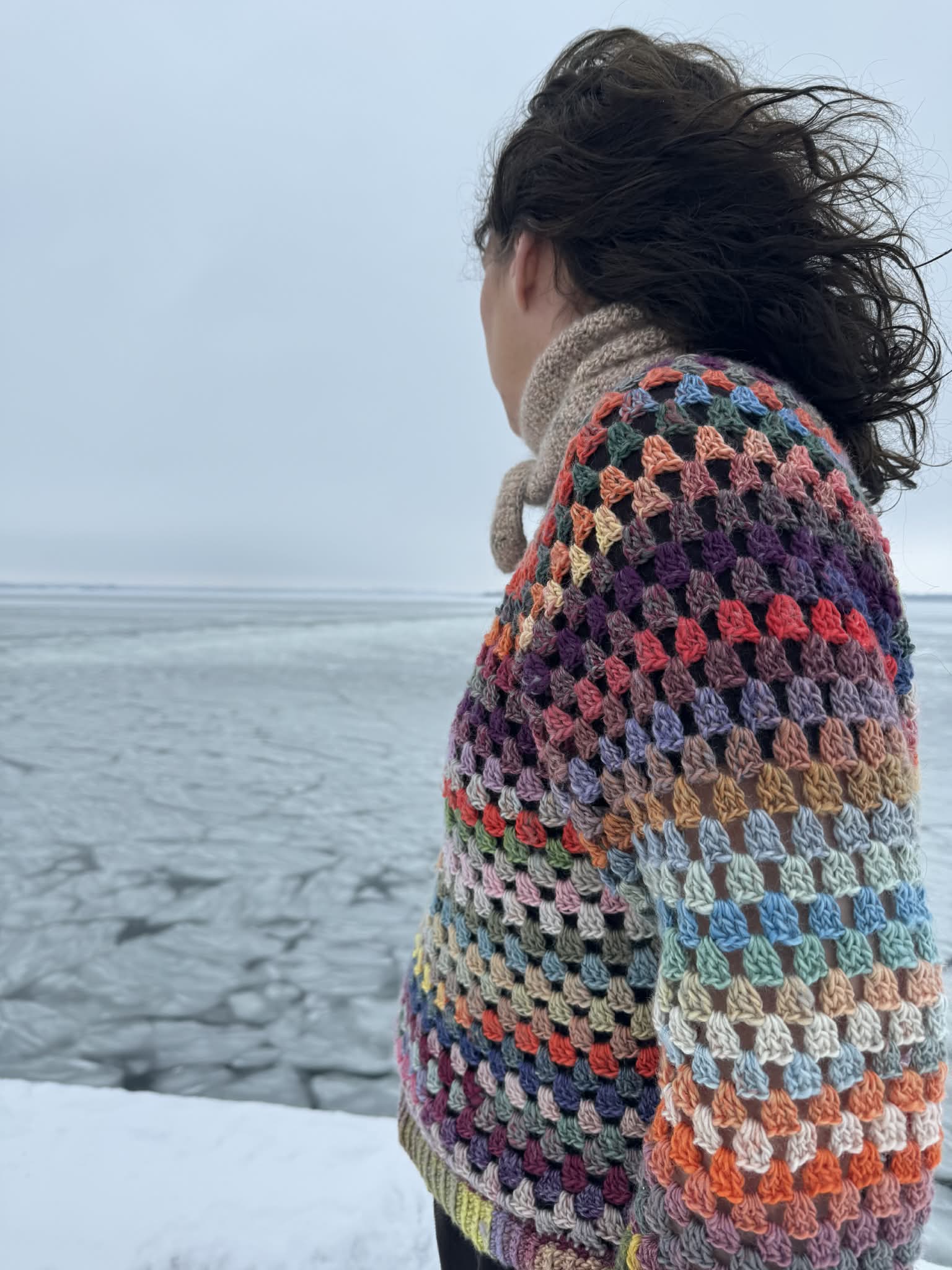 Modellen er hæklet i maskegrupper bestående af 3 stangmasker, som hækles i maskebuen fra forrige omgang,
